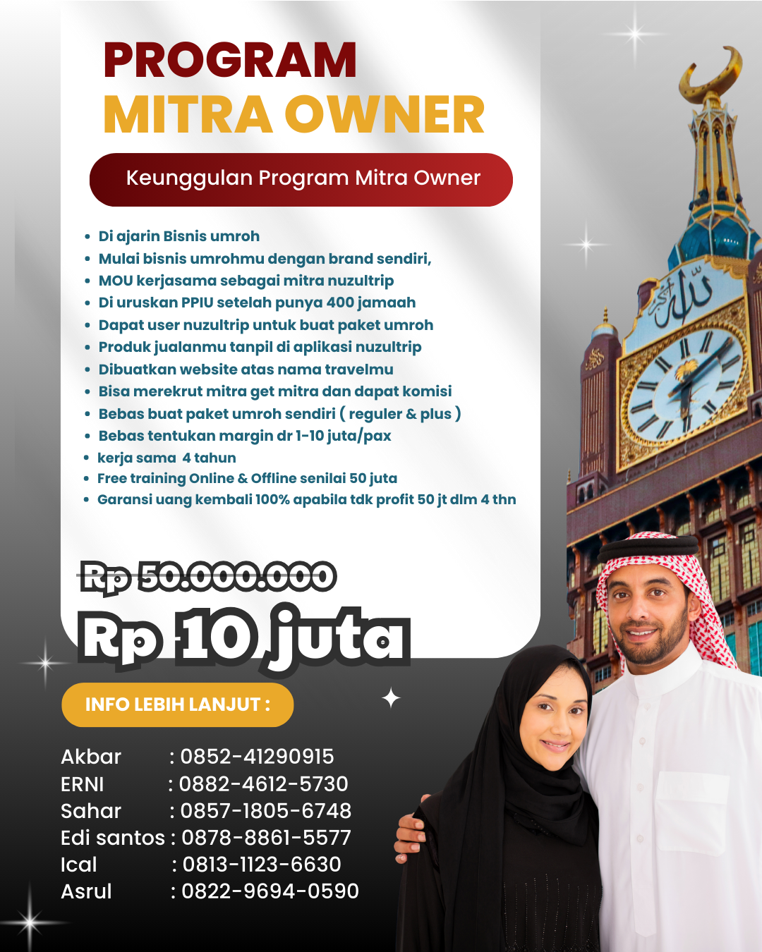 Mula-mula umroh mandiri, lama-lama punya travel umroh sendiri & dapatkan diskon khusus 50% di acara seminar untuk ikutan bisnis umroh bersama nuzuli