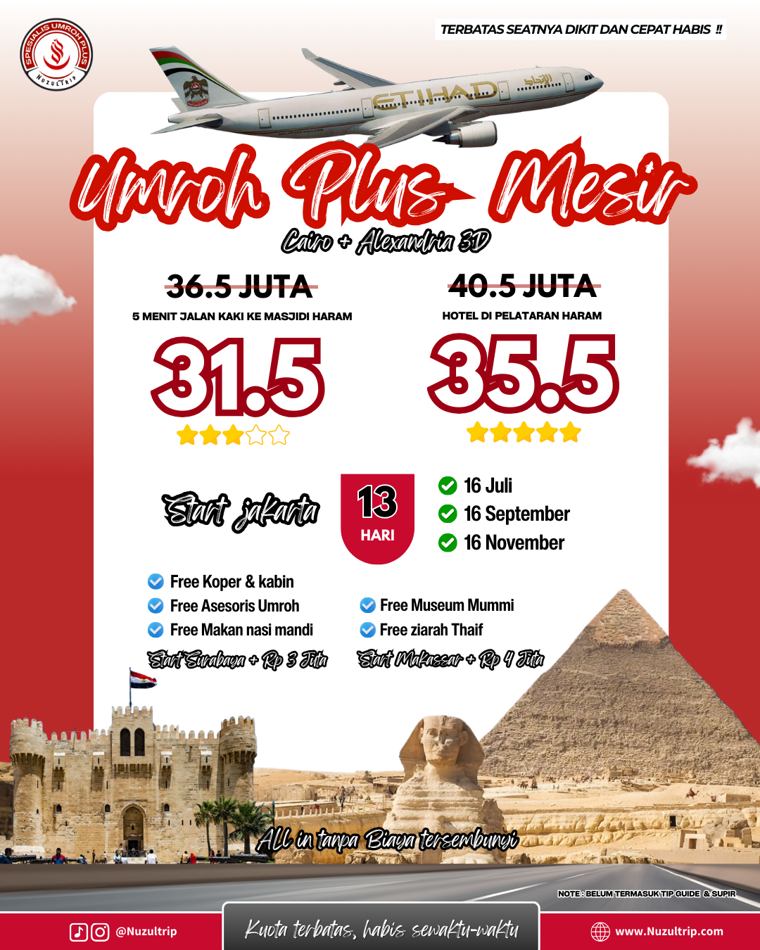 Dengan paket dari Nuzul Trip harga bersahabat dan pastinya umrohmu bakalan aman dan menyenangkan